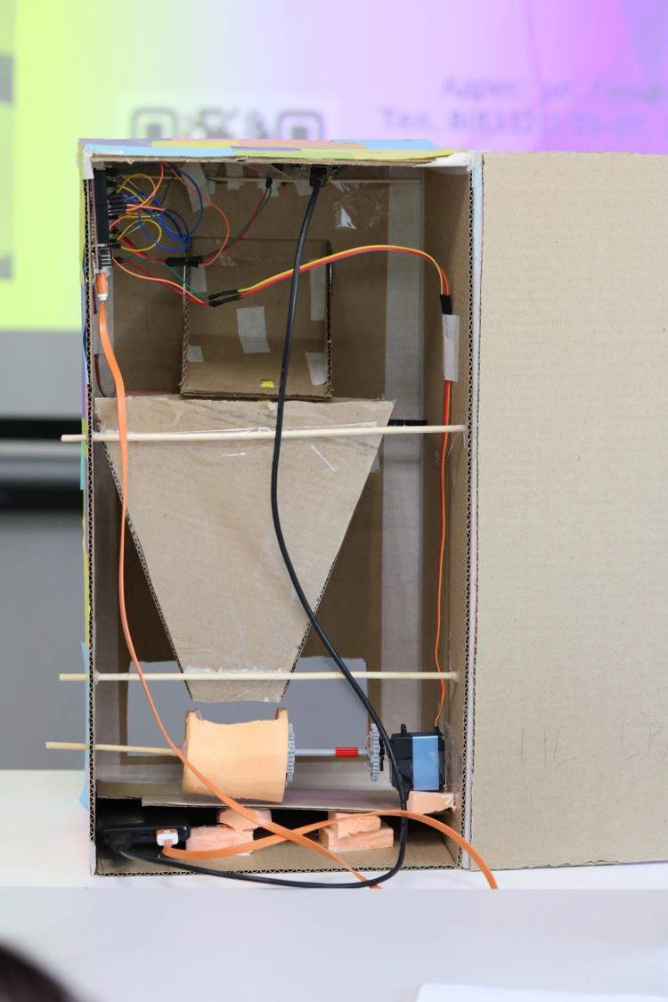 Среди работ учащихся - «Анализ состава железных изделий, изготовленных на территории Омутнинского района XII-XiX в.», робо-рука, робот-мотоцикл, автомат хорошего настроения, игра на платформе Scratch «Дроби», лингвистическая игра для младших классов, Театр Теней и много других интересных проектов.