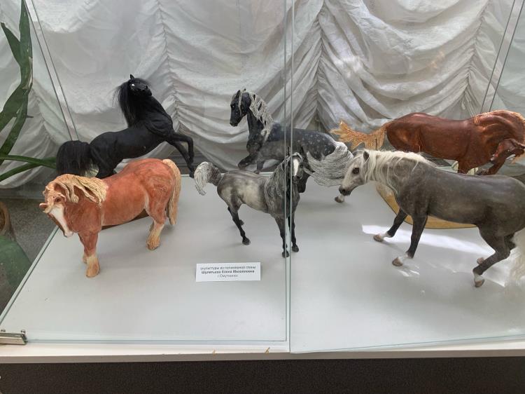 Потрясающие куклы ручной работы, вязаная одежда, лоскутные одеяла и мягкие игрушки, коллекция обворожительных лошадей из полимерной глины, шедевральный дом-конструктор и машина, выпиленные из дерева, изделия из ротанга, вышивки и картины из бисера, дымковские игрушки, сувениры из металла и соленого теста, макраме и посуда из бумажной лозы - все это вызвало удивление и восторг у детей! Спасибо экскурсоводам за организацию выставки!
