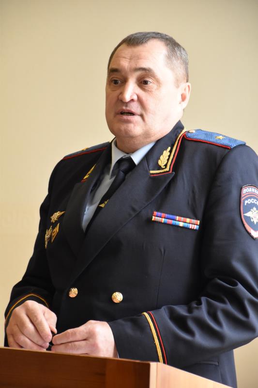 Перед началом обсуждения вопросов повестки дня выступили начальник УМВД К.Н. Селянин и председатель Общественного совета при Управлении Г.А. Мамаев.