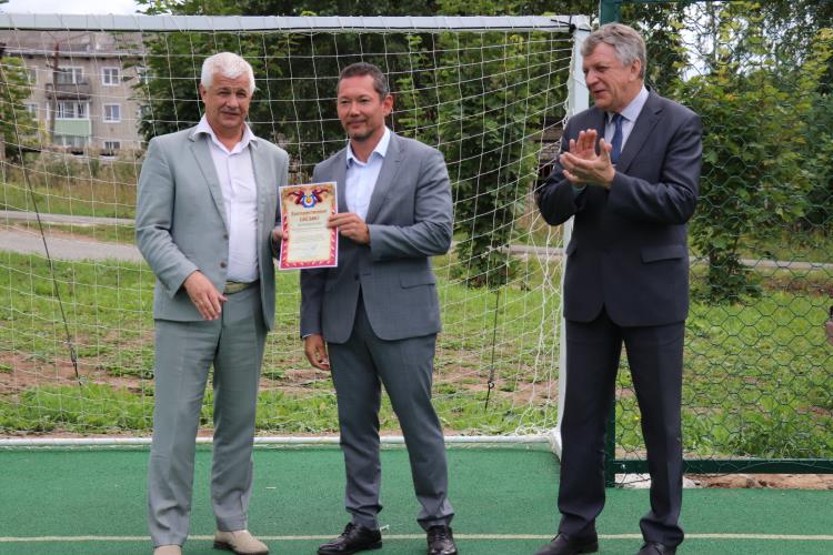 Благодарственным письмом главы города за сотрудничество в устройстве многофункциональных площадок и вклад в развитие массового спорта в Омутнинске награжден генеральный директор АО «ОМЗ» С.А. Волосков.