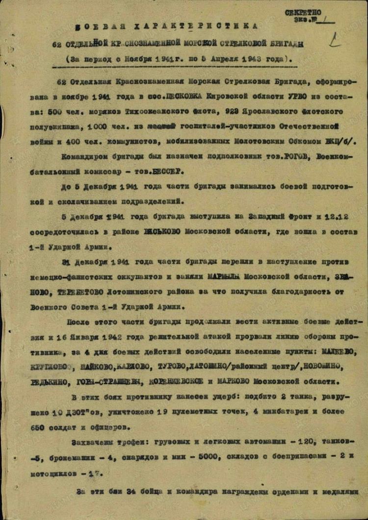 В рамках реализации проекта "Наша память 2.0: реновация музейной экспозиции" в Омутнинском колледже педагогики, экономики и права ведется исследовательская работа студентов, направленная на поиск информации о боевом пути и подвигах 62-й отдельной морской стрелковой бригады.