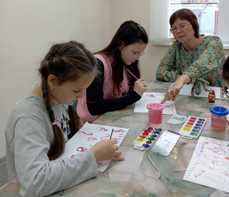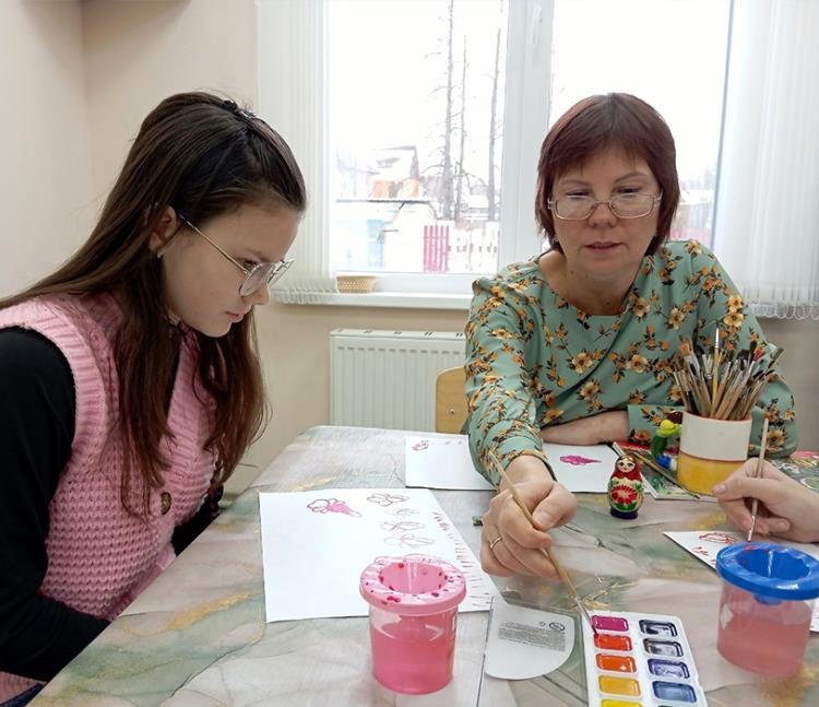 Руководитель творческого объединения Наталья Исупова на первом занятии познакомила школьников с традиционной русской художественной росписью. Рассказала ребятам о самых известных и старинных ее видах, раскрыла некоторые загадки рисунка.