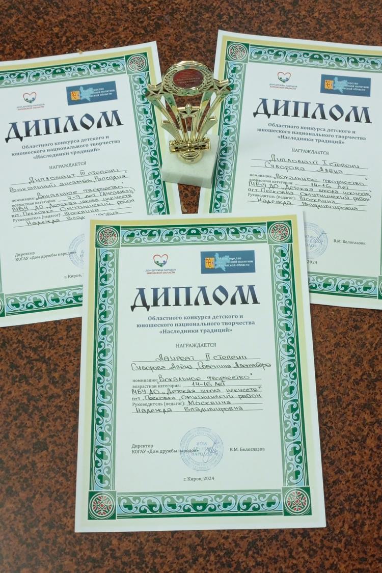 Диплома Лауреата 2 степени удостен дуэт Алены Суворовой и Александры Собениной. Дипломантом 1 степени стала Алена Суворова (соло). И первое выступление вокального ансамбля мальчиков «Рапсодия» (младший состав, фортепианное отделение) признано Дипломантом 3 степени.