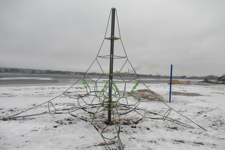 Также на городском пляже смонтирована сетка «Пирамида» для детского досуга. Кроме того, завершены работы по устройству лестницы у Павловского моста. Продолжаются работы по наружному освещению, установке металлических ограждений, устройству понтонного моста (у территории городского пляжа).
