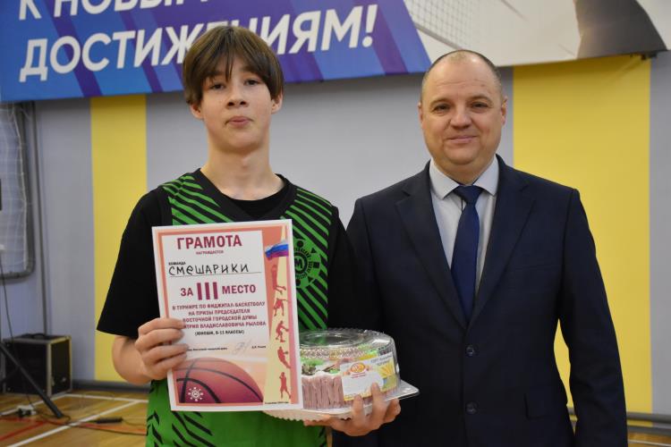 После торжественного мероприятия состоялся захватывающий турнир по фиджитал-баскетболу на призы председателя Восточной городской думы, начальника сортопрокатного цеха Омутнинского металлургического завода Дмитрия Рылова. В турнире приняли участие шесть команд. Подростки сначала увлеченно играли в баскетбол на поле, а затем – на виртуальной площадке. Каждый спортсмен был награжден.