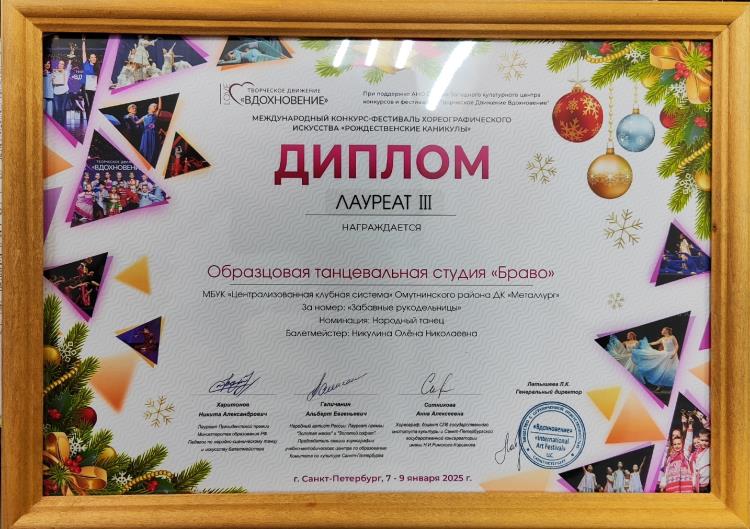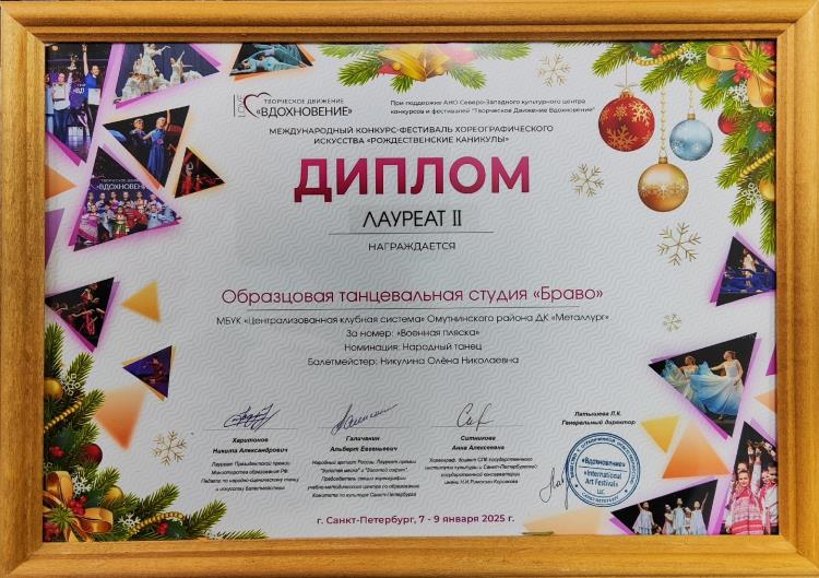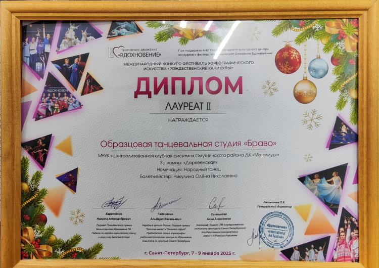 Образцовая танцевальная студия «Браво» Дворца культуры «Металлург» под руководством хореографа Олены Никулиной приняла участие в Международном фестивале "Рождественские каникулы" в Санкт-Петербурге.