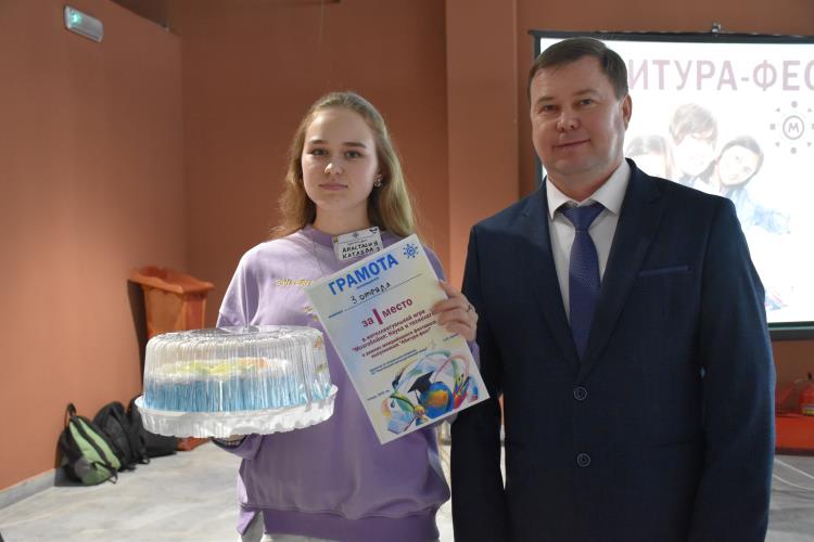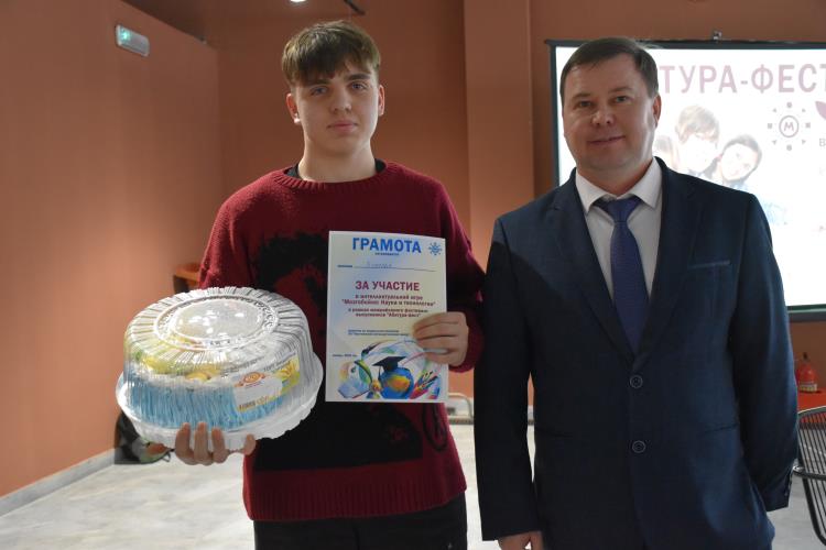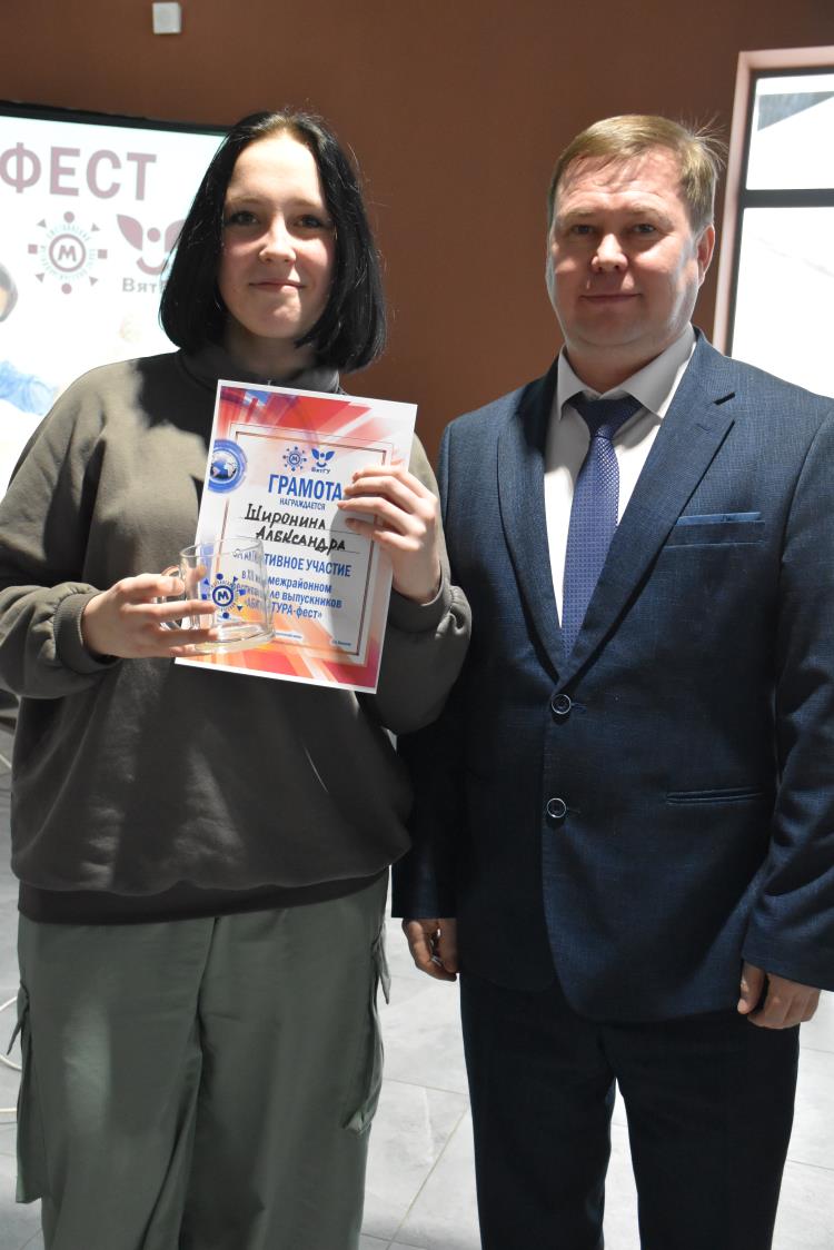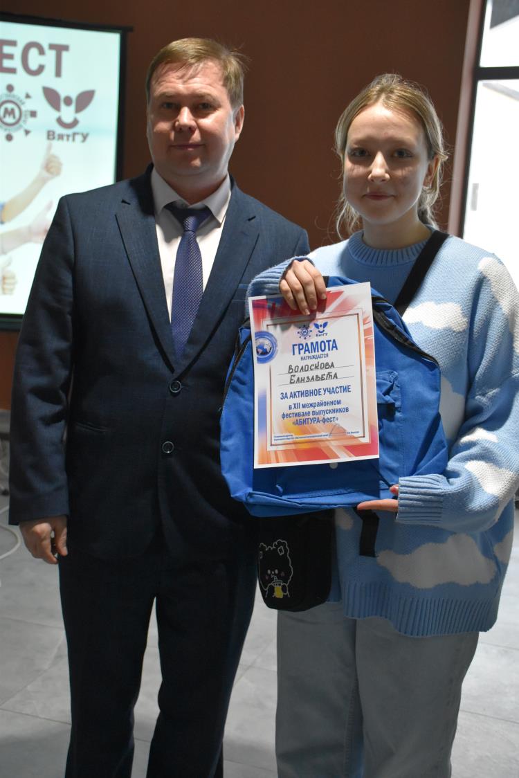 Завершился фестиваль награждением. Директор по персоналу металлургического завода Алексей Кузнецов и директор представительства ВятГУ в Омутнинске Светлана Ичетовкина вручили грамоты и подарки тем, кто в большей степени проявил себя на тренингах, профориентационных площадках и в различных активностях.