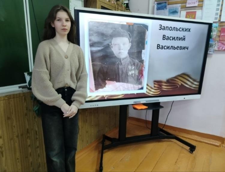 - Мой прадедушка Запольских Василий Васильевич родился в 1921 году, - рассказала Полина Костицына. - В 20 лет в составе 355-ой стрелковой дивизии был отправлен на Северо-Западный фронт. В боях под Смоленском получил серьезное ранение и умер в госпитале от ран.
