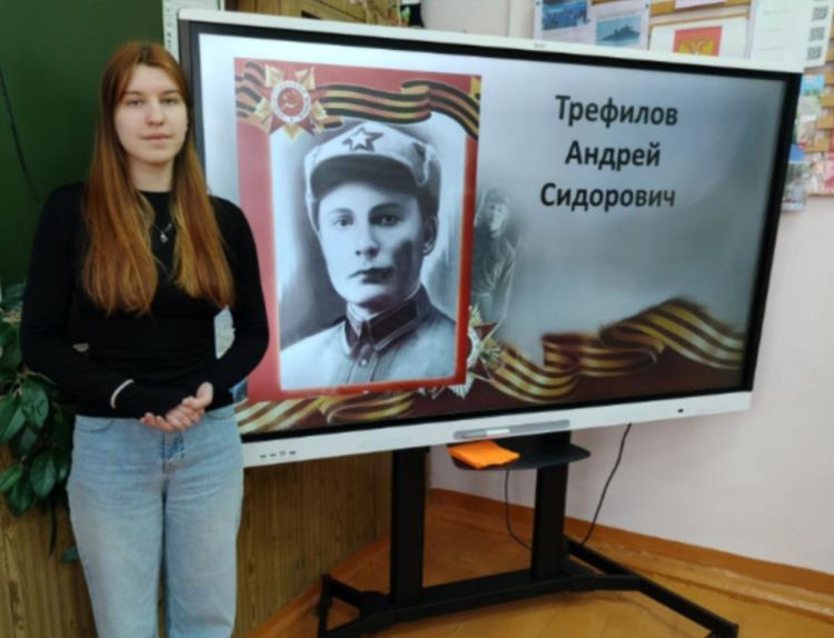 Анастасия Подгорбунская рассказала, что ее прадед Трефилов Андрей Сидорович был командиром пулеметного взвода, погиб в 1942 году под Смоленском.
