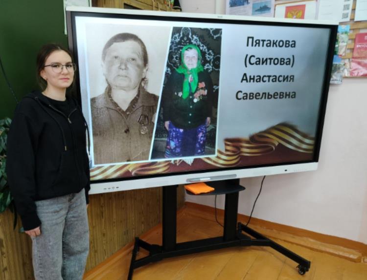 - Моя прабабушка Пятакова (Саитова) Анастасия Савельевна в феврале 1943 года была призвана в школу связи, - сообщила Анастасия Осколкова. - Три месяца их учили на связистов-опознавателей определять вражеские самолеты ночью по звуку, днем - по силуэту в бинокль. После обучения совсем юных девчонок отправили на второй Белорусский фронт. Затем в Латвию, где они и встретили долгожданную победу!