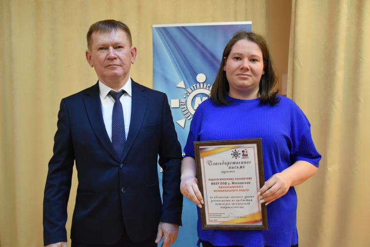 За обеспечение высокого уровня успеваемости по предметам инженерно-технической направленности благодарности объявлены директорам школ сел Бисерово и Пашино, деревни Московская Афанасьевского муниципального округа Н.Б. Братчиковой, В.В. Чубаревой и В.Ю. Чигаревой; а также руководителям школ поселков Белореченск и Восточный Е.Н. Симоновой и Л.В. Ушаковой.