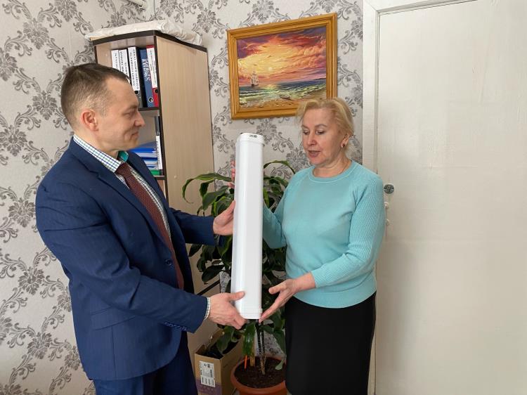 Рециркуляторы получили и детсады Восточного – «Сказка» и «Снежинка». Их вручил депутат районной Думы, заместитель главного механика АО «ОМЗ» Андрей Данилов.
