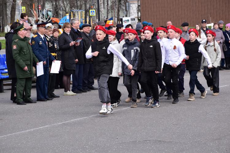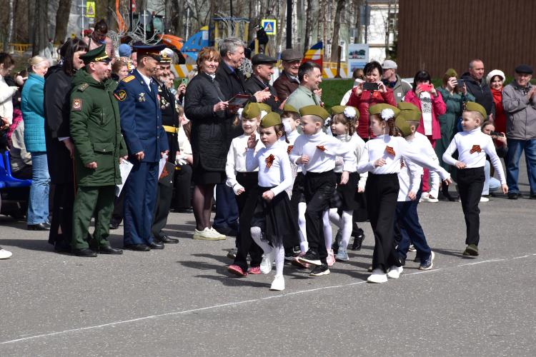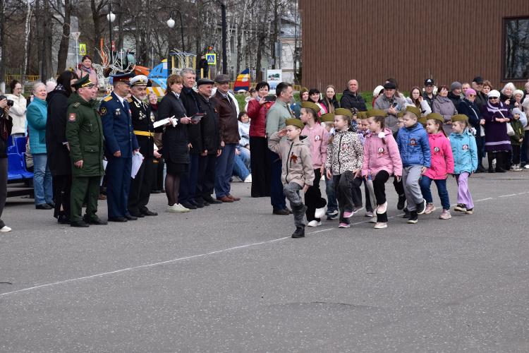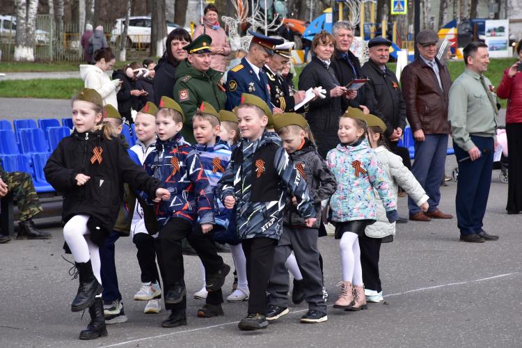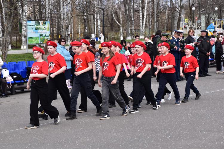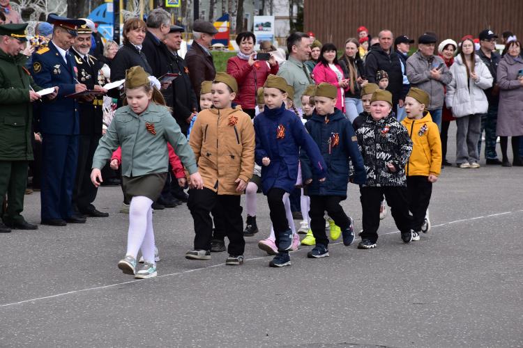 На набережной пруда Омутнинска впервые состоялся Парад Победы для детей дошкольного возраста, юнармейцев и курсантов объединений района, посвященный 80-летию Великой Победы.
