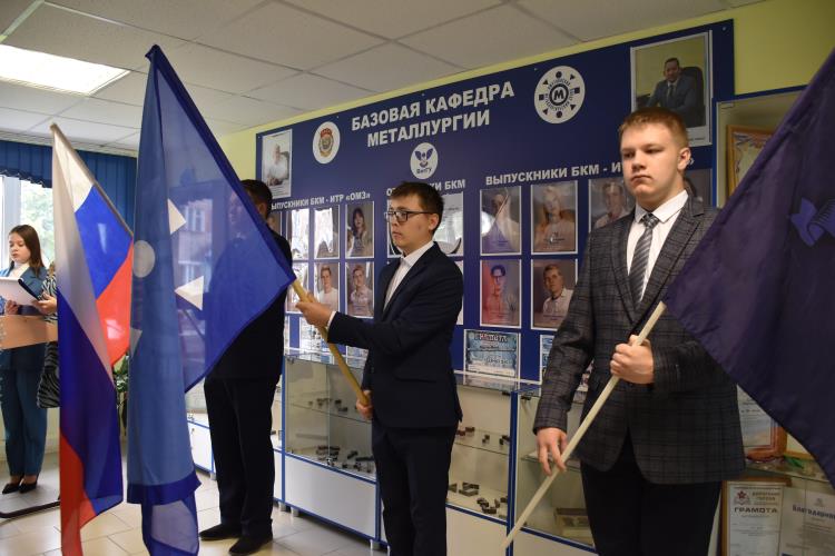С началом занятий студентов кафедр металлургии и машиностроения поздравили председатель Совета директоров АО «ОМЗ» А.Д. Волосков, заведующий базовой кафедрой металлургии вуза М.А. Мельчаков и доцент кафедры материаловедения В.А. Одегов.