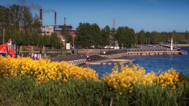 Вдоль прогулочной дорожки разместят событийную и информационную зоны. Территорию украсят парковые качели и арт-объект в виде саламандры. Наружную теплотрассу задекорируют художественной композицией из труб.