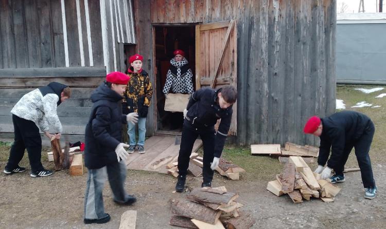 Ребята помогли пожилой женщине-инвалиду расколоть и сложить дрова в поленницы. Это уже не первая помощь от юнармейцев: весной они благоустроили территорию у её дома, сделав новые тротуары, а в сентябре сложили две машины дров в поленницы.