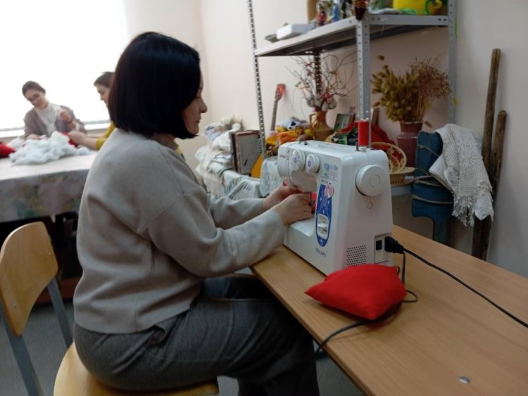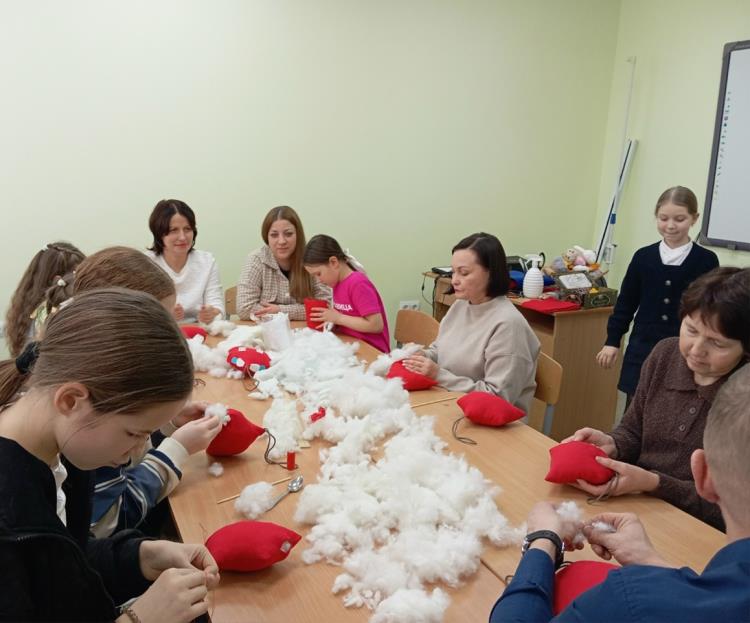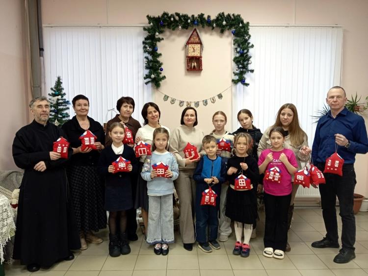 Елочные игрушки — домики смастерили воспитанники православной студии рукоделия «Мастерская чудес» в поддержку участников СВО.